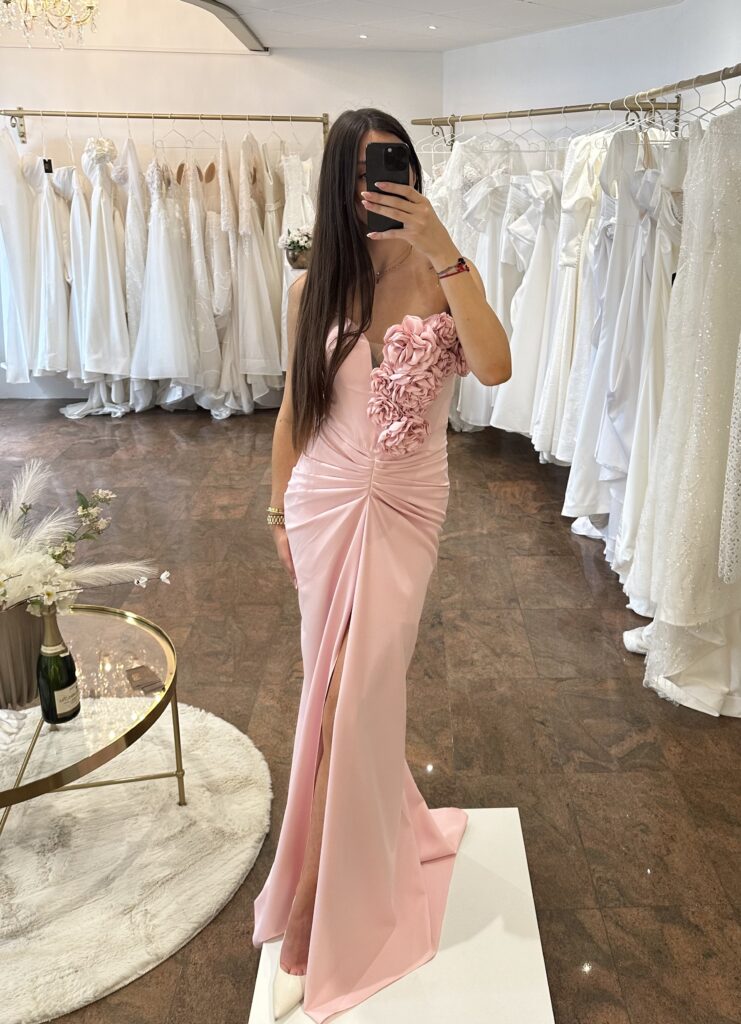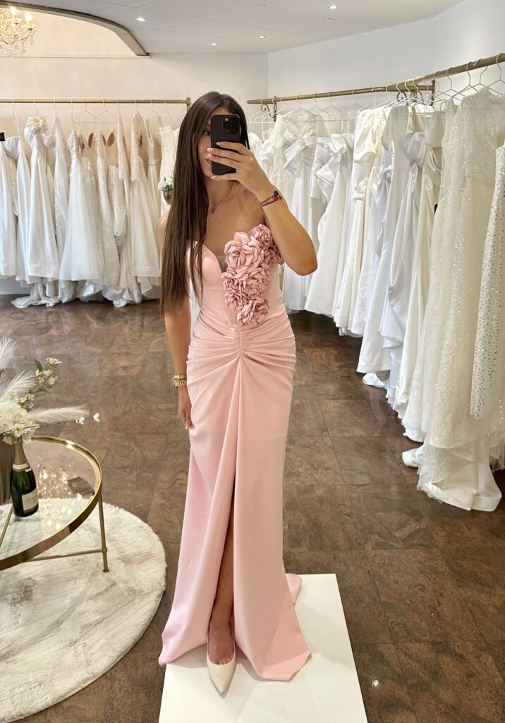 Otkrijte čaroliju s haljinom "Barbie" koja utjelovljuje eleganciju i ženstvenost. Ova očaravajuća ružičasta haljina ističe se profinjenim krojem i zavodljivim detaljima. Gornji dio ukrašen je romantičnim cvjetnim aplikacijama, a suknja pada u elegantne nabore koji pružaju dozu glamura svakoj prilici. Idealna za svečane događaje — haljina "Barbie" učinit će vas zvijezdom večeri.