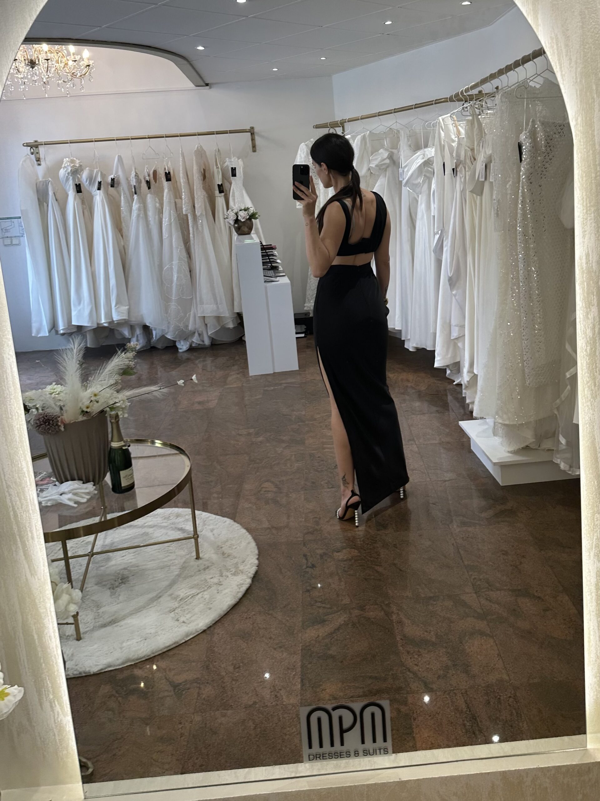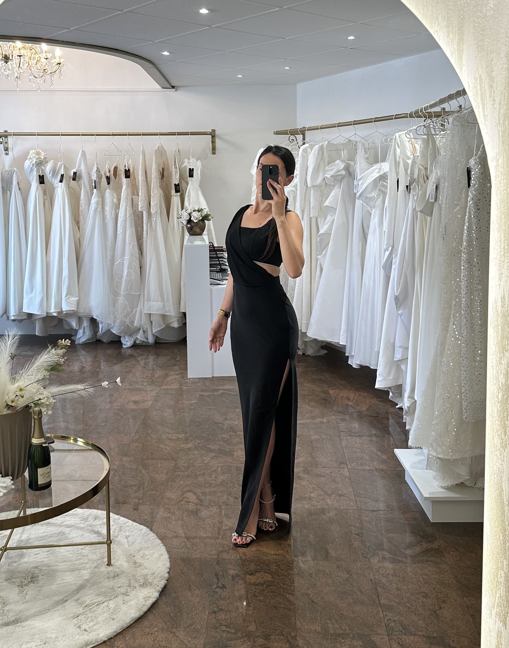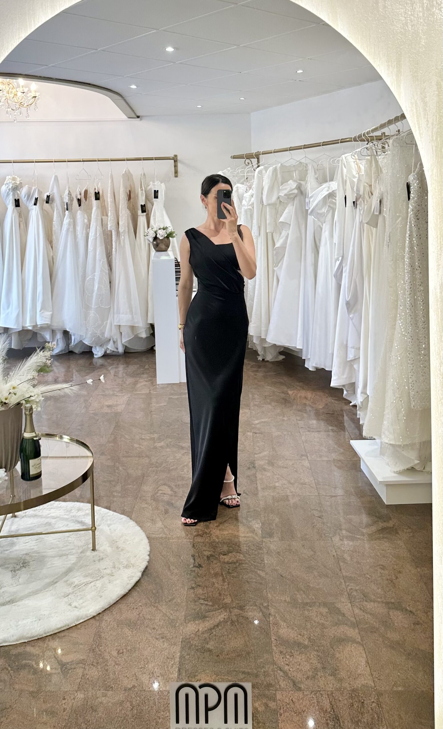 Beatrix je sinonim za klasičnu eleganciju i sofisticiranost. Ova crna haljina ističe se jednostavnim, ali efektnim krojem koji savršeno prati liniju tijela. S suptilnim izrezom i profinjenim završnim detaljima, "Beatrix" je idealna za svečane večeri ili posebne prigode gdje želite ostaviti dojam. Osjetite se samopouzdano i elegantno u ovoj bezvremenskoj kreaciji.