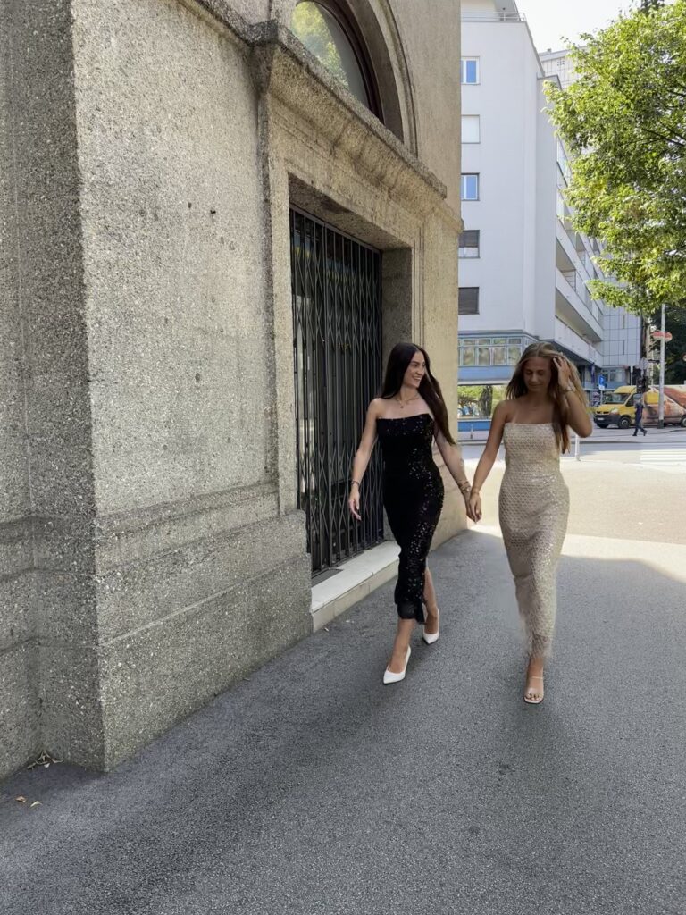 Ova dramatična crna verzija stvara elegantan i profinjen, ali i zavodljiv izgled. Duboka crna nijansa je savršena podloga za bezbroj blistavih šljokica koje hvataju svjetlost pri svakom pokretu. Idealan izbor za ženu koja voli klasičan, ali upečatljiv stil.