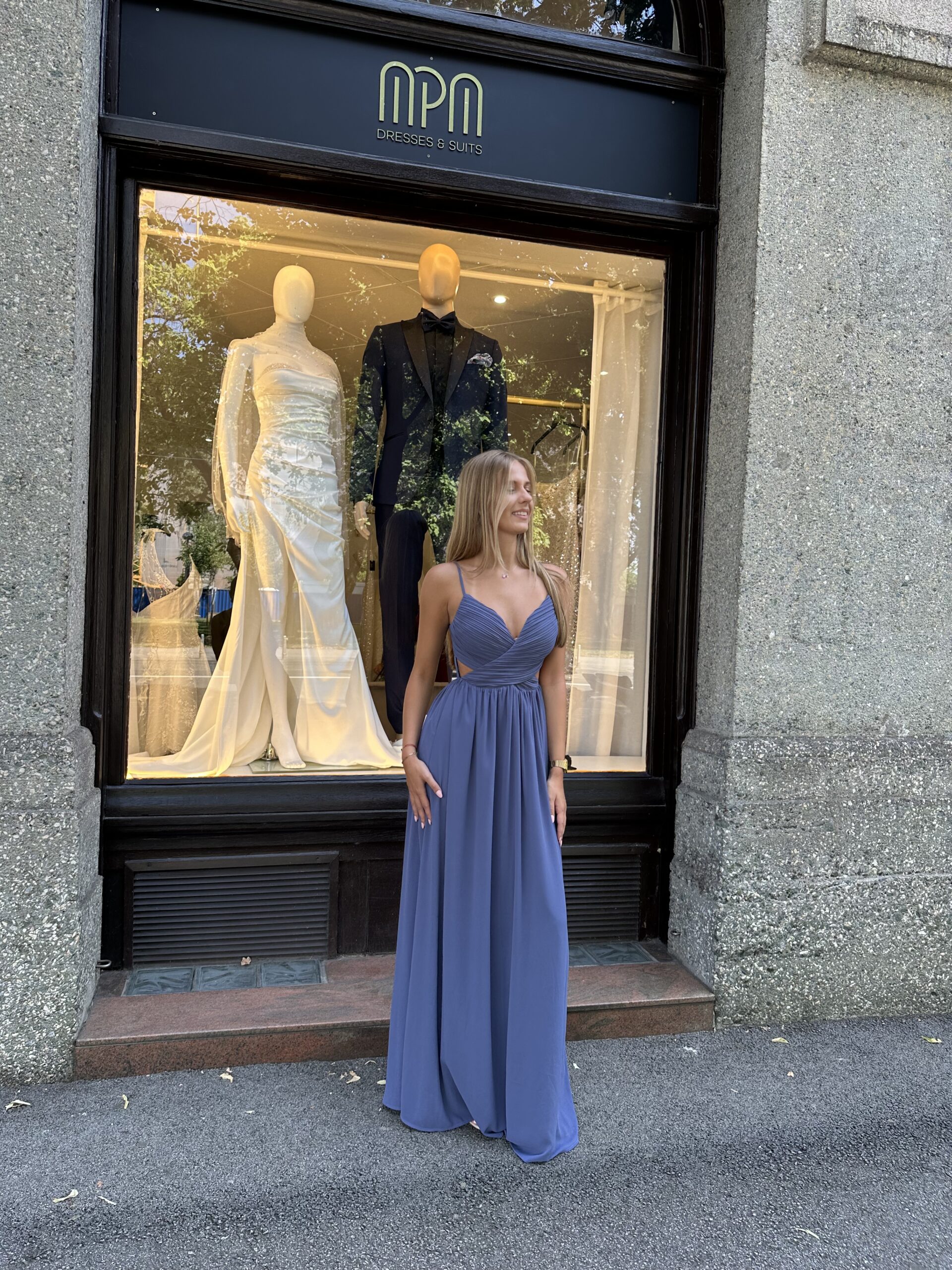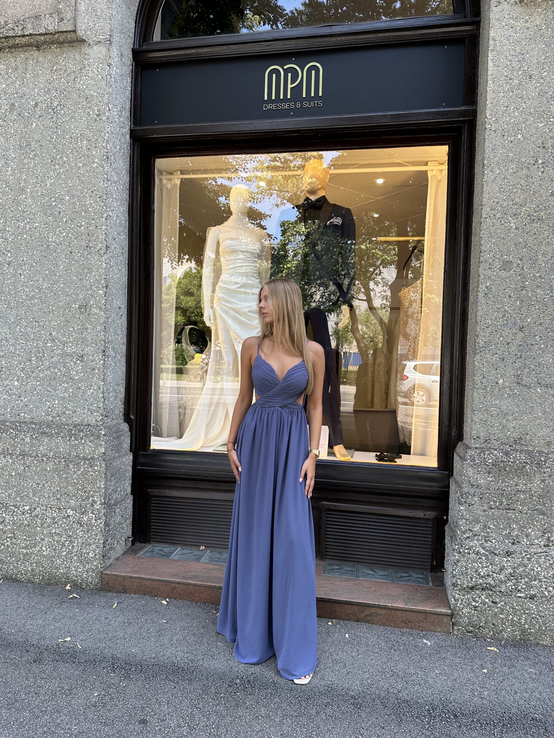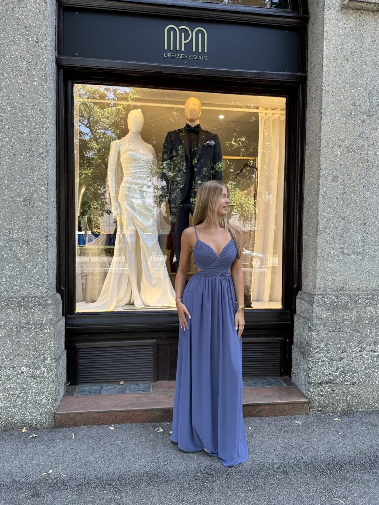Haljina BORA je esencija bezvremenske elegancije i udobnosti. Njena prekrasna, smirujuća nebesko plava nijansa donosi dašak svježine i profinjenosti u svaku svečanu prigodu.