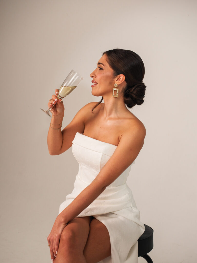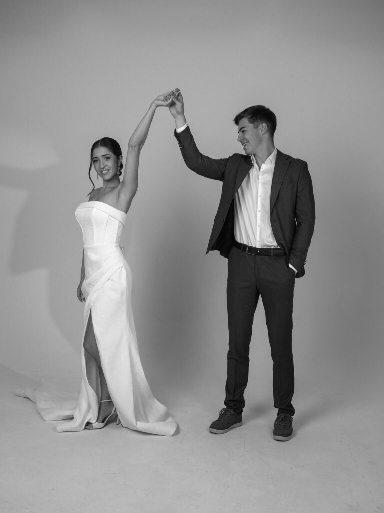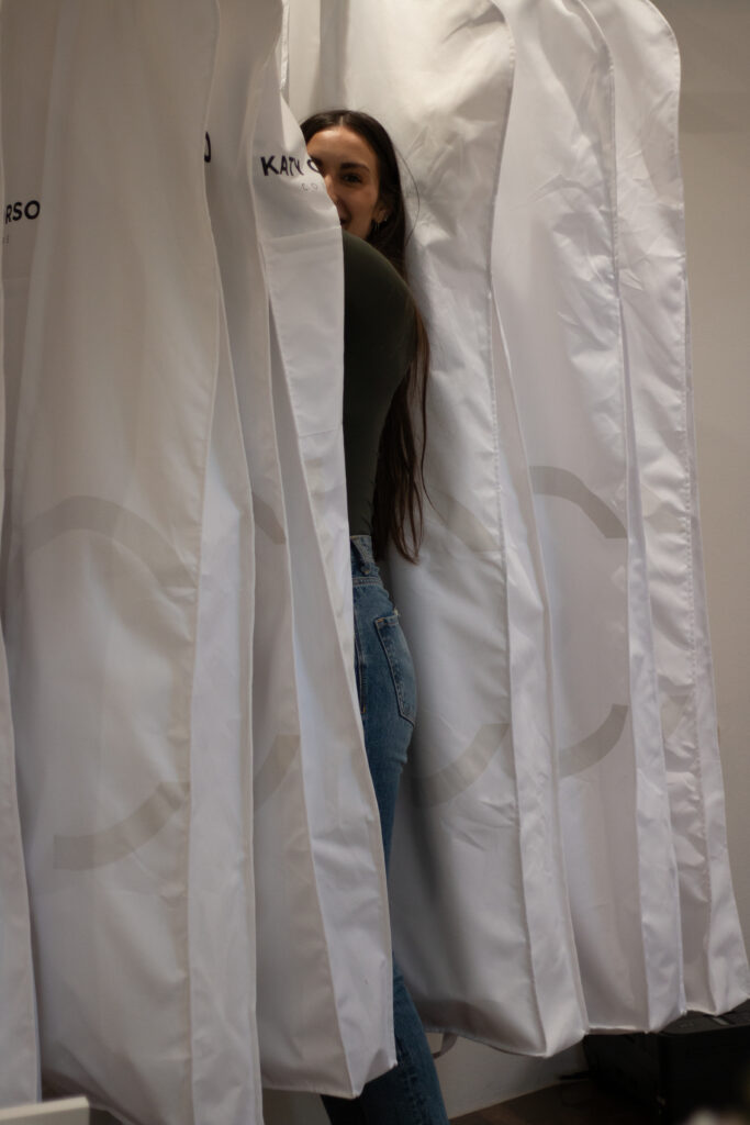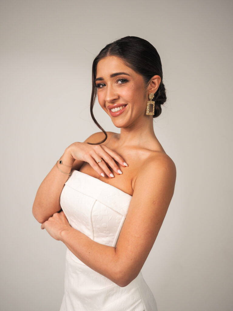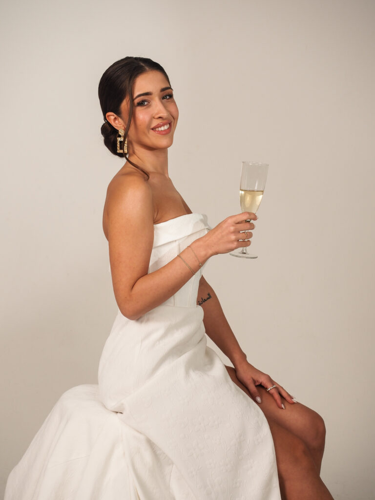 Elegantna A-kroj vjenčanica s laganim čipkastim detaljima i dubokim V-izrezom. Gornji dio je ručno vezen, dok lepršava suknja od tila stvara romantičan i prozračan dojam pri svakom koraku. Idealna za mladenke koje žele spoj klasične ljepote i suptilne moderne elegancije.