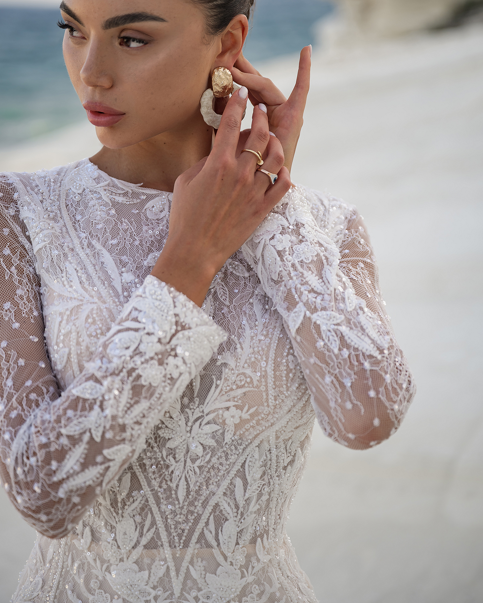 Amora je vjenčanica koja odiše tihom snagom i promišljenom jednostavnošću. Profinjena u svakom pogledu, Amora donosi minimalističku estetiku s dubokom elegancijom, savršeno prilagođenu modernoj mladenki koja vjeruje u moć suptilnog izraza. To je haljina koja ne traži pažnju – ona ostaje u sjećanju.